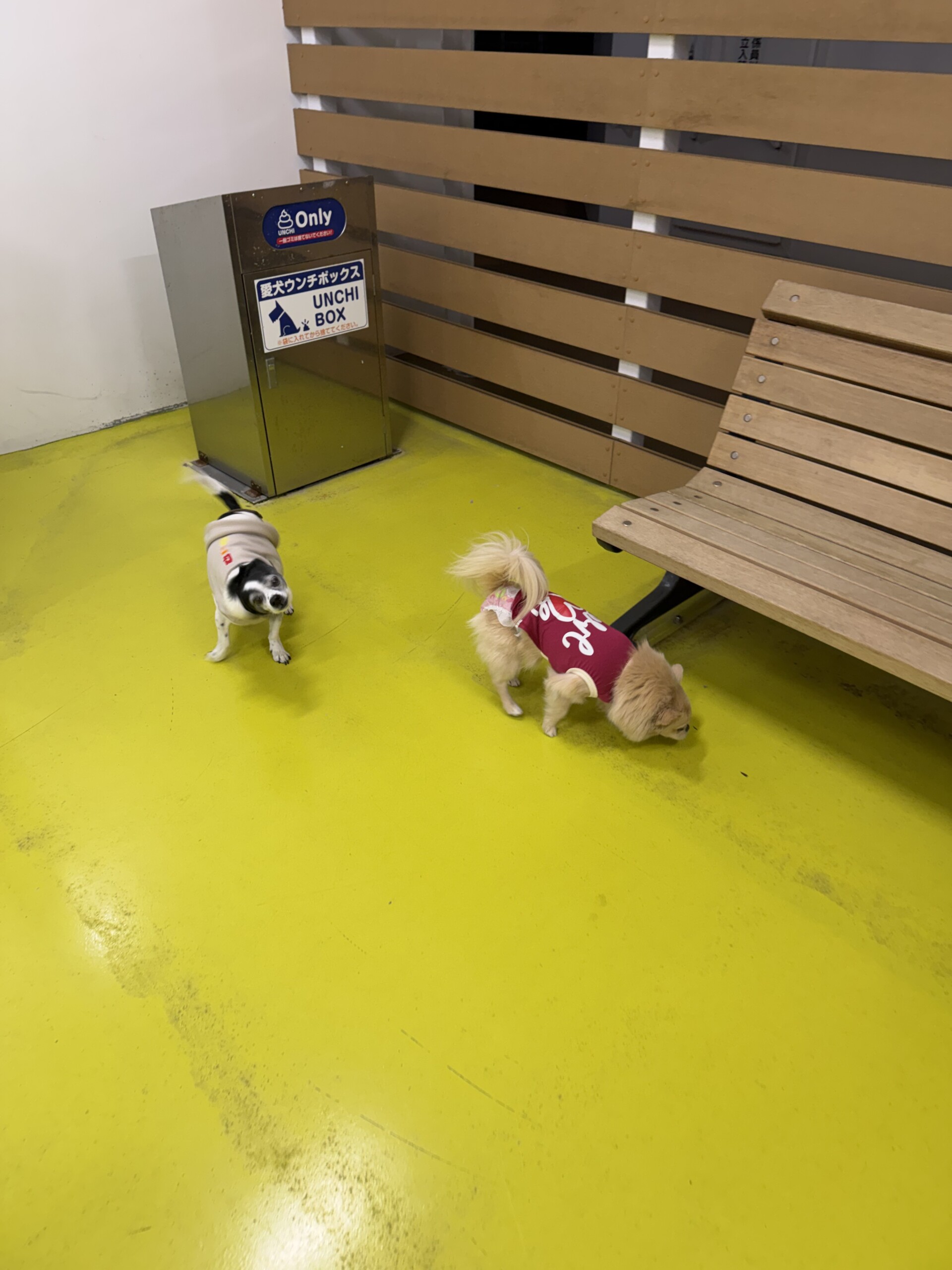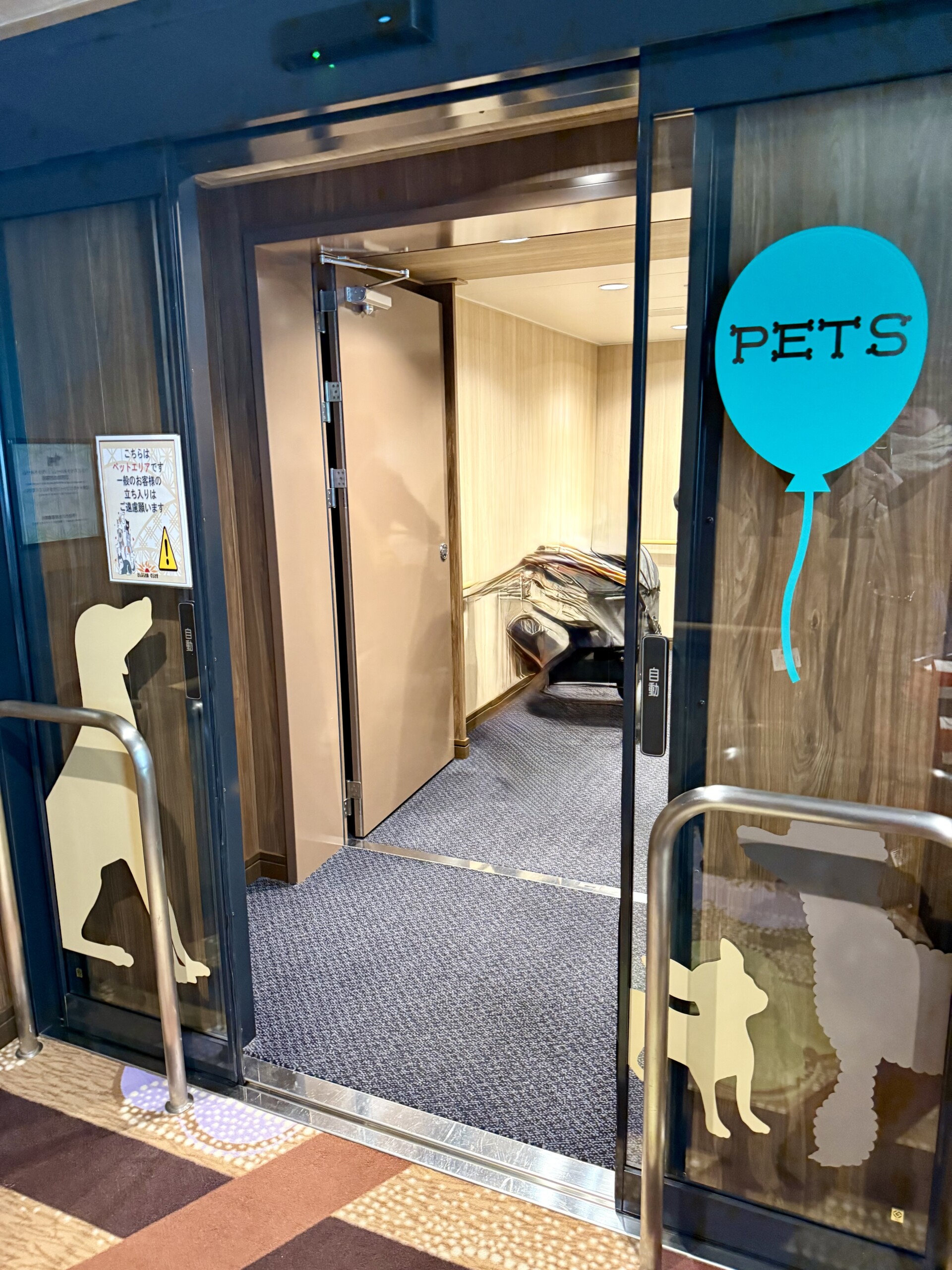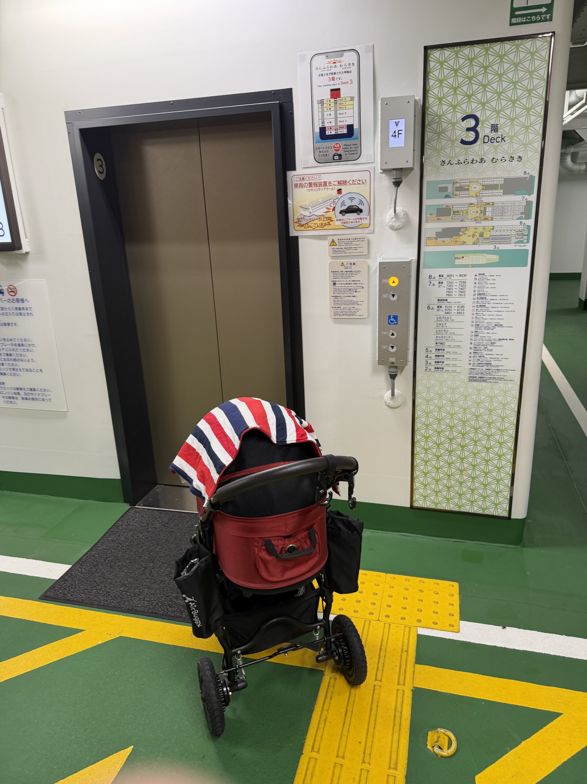 ワンズはバギーに乗せて、3階から7階にエレベーターで移動です。